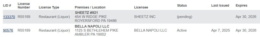The Royersford location will have a liquor license, which was acquired from an Ambler pizza shop. The license is currently listed as pending. Limerick Township’s board of supervisors approved the out-of-township transfer in 2025.